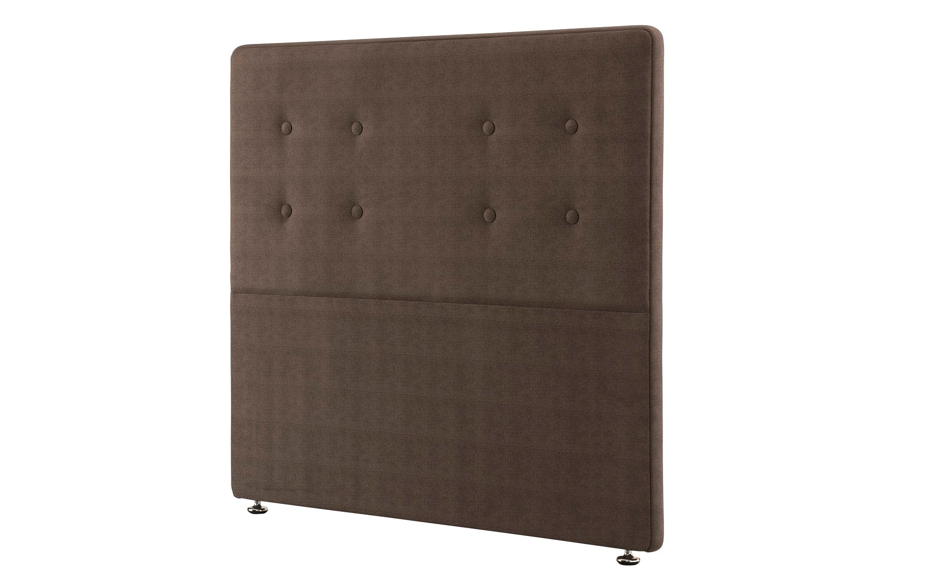 The Onyx headboard is available to order in a range of colours; in both 'Full' Height (as shown - it is upholstered down to the ground, and finished with chrome feet) or 'Standard Height' SH (with two wooden brackets to be attached to the back of the bed).