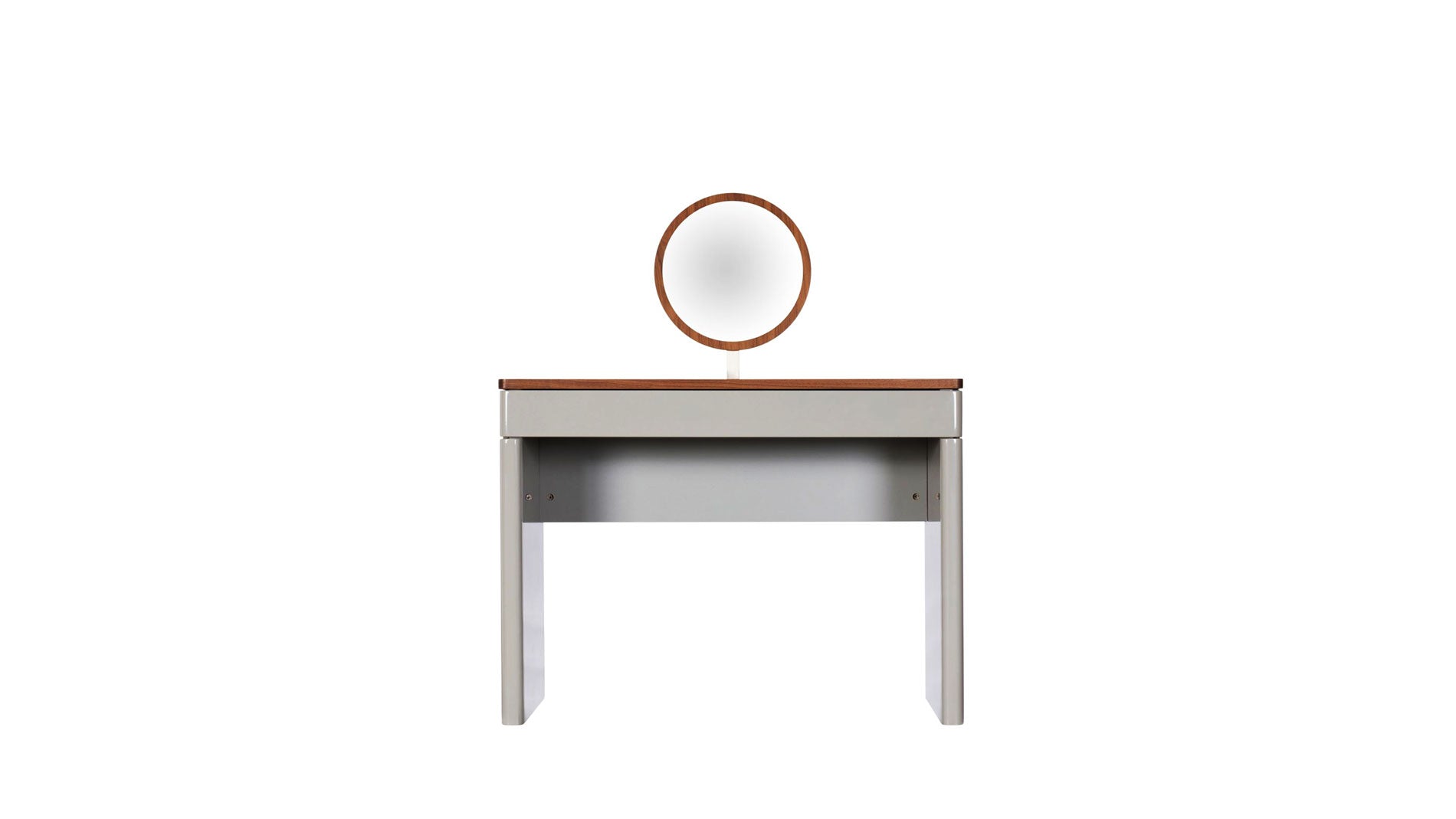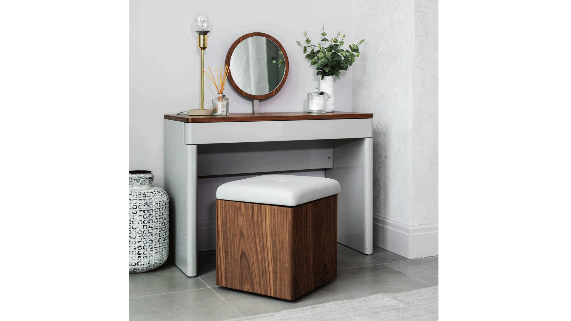 A unique mixture of contemporary and classic design. Hand finished in stone grey with limed oak surfaces and solid oak drawer linings.