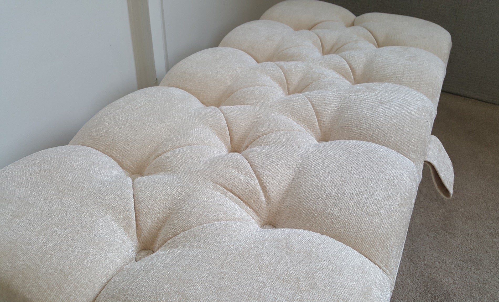 The Parisian blanket box has a deep button upholstered top and is available in a range of colours, fabrics and imitation leathers.