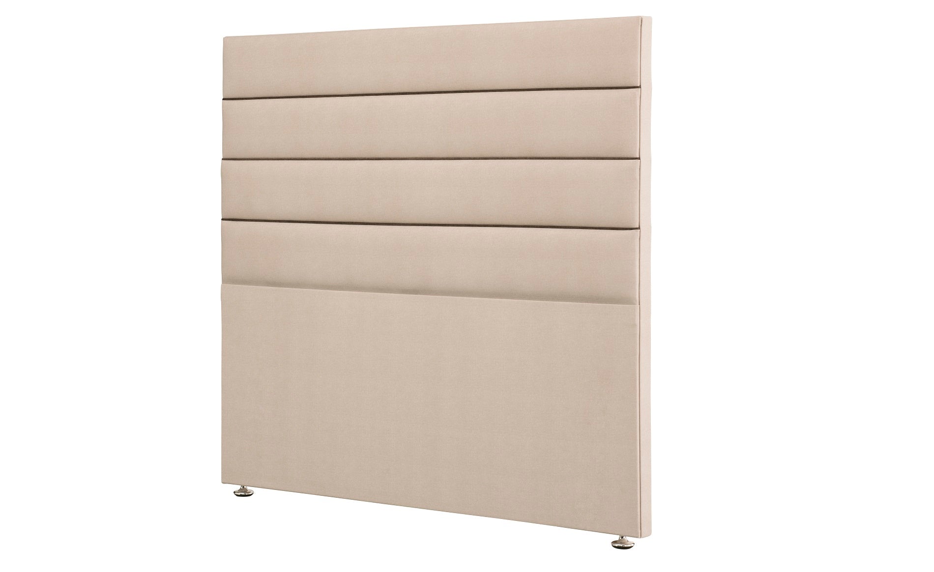 The Pearl headboard is available to order in a range of colours; in both full height ‘FH’ (as shown – it is upholstered down to the ground, and finished with chrome feet) or Standard Height ‘SH’ (with two wooden brackets to be attached to the back of the bed).