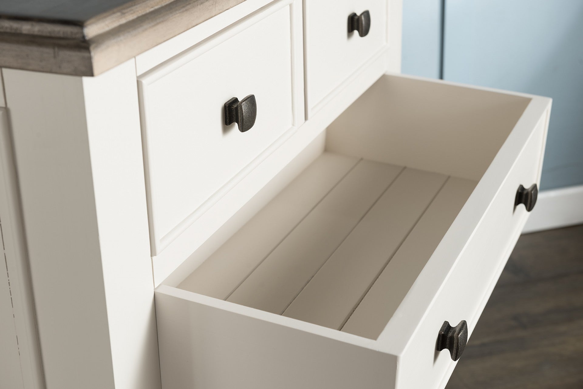 The Portland range offers remarkable value for money – it is a beautiful ivory painted, solid wood furniture range with ‘weathered look’ tops and antique effect hardware. Arrives fully assembled.
