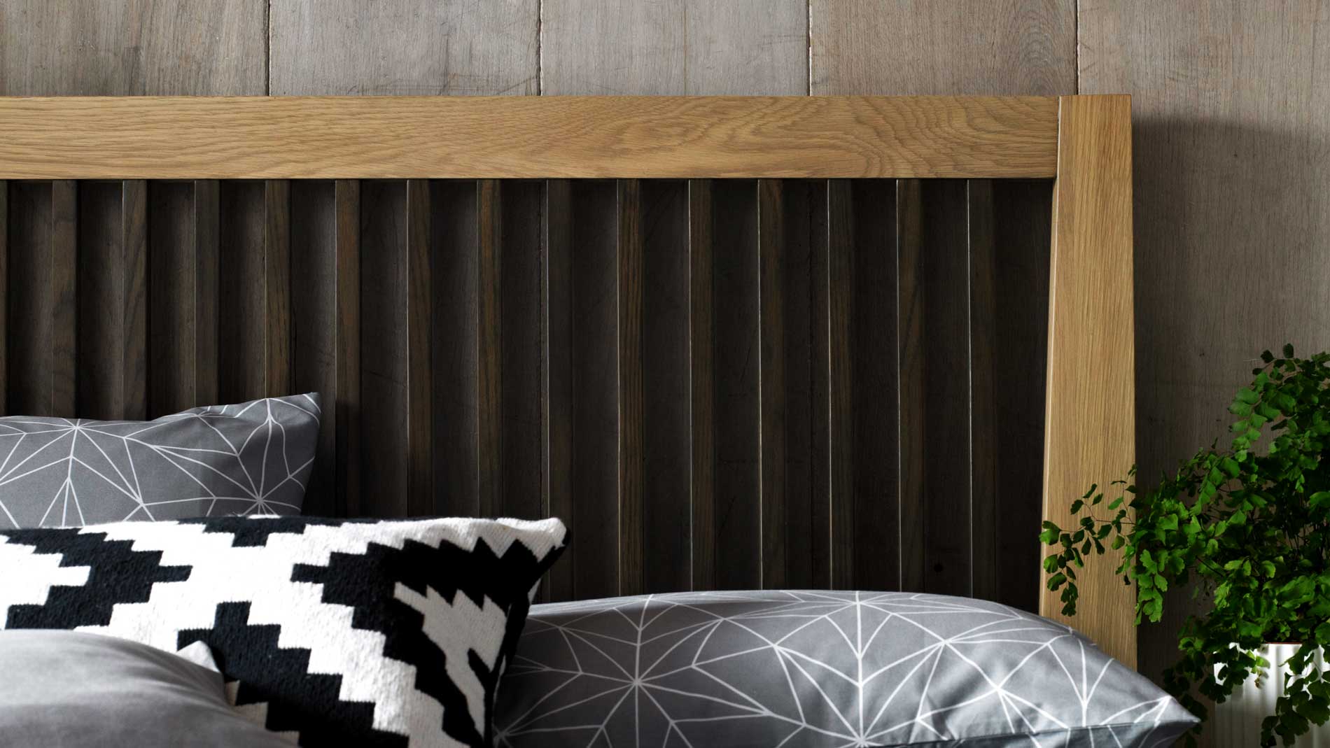 The quality 4ft6 Double bed frame from the Ravi bedroom range. A fine example of quality craftmanship which is evident throughout. Sturdy and stylish, the Ravi Double bed frame is made from solid Oak and Oak veneers. This bed frame boasts tapered legs which add to the distinctive style whilst the Oak spindles in the headboard contrast beautifully with the weathered Oak frame. It's strong too, with a slatted sprung base and steel centre rail for added support, the build of this bed frame will leave you in no doubt about its quality and style. If the Double bed frame is a touch on the small side, you can opt for the 5ft Kingsize bed frame. Perfect for the style-conscious homeowner, we know you will be delighted with the quality and the price.