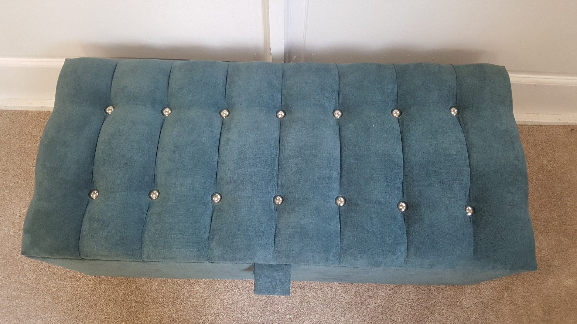 The Venice blanket box has a deep button upholstered top and is available in a range of colours, fabrics and imitation leathers.