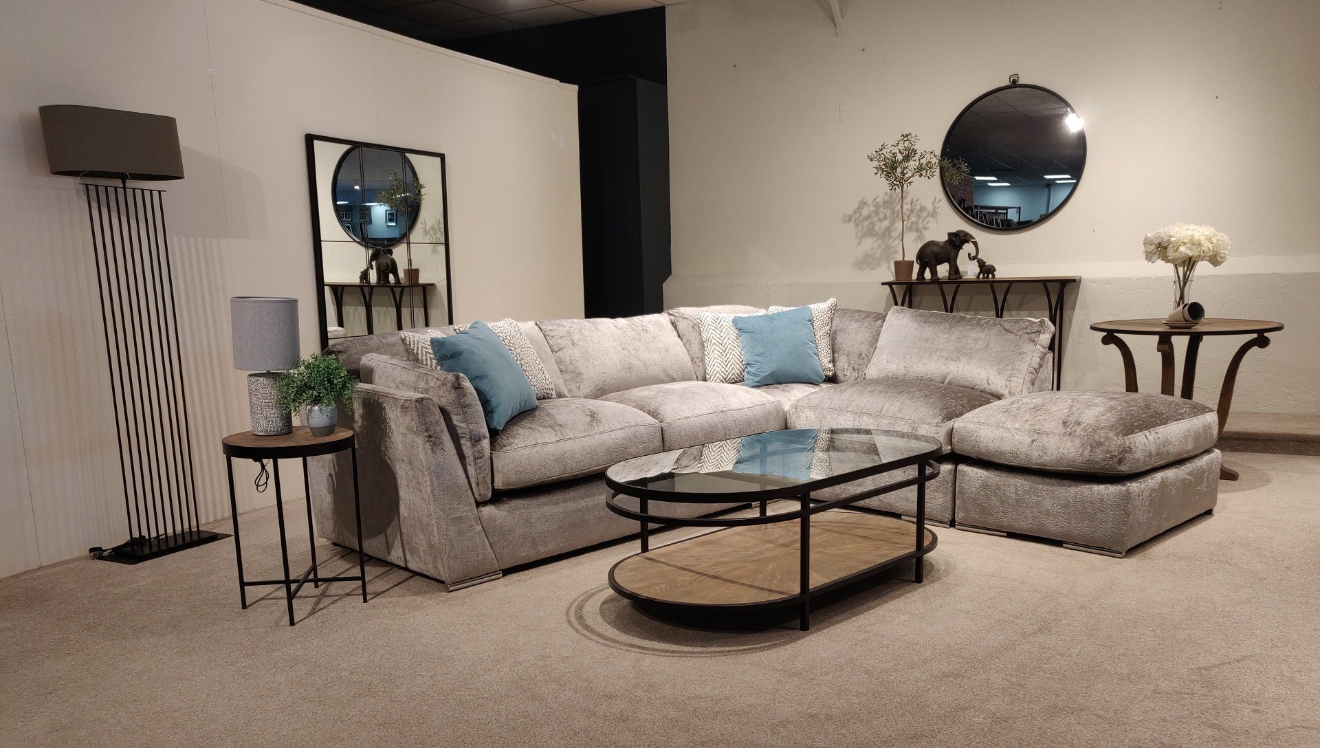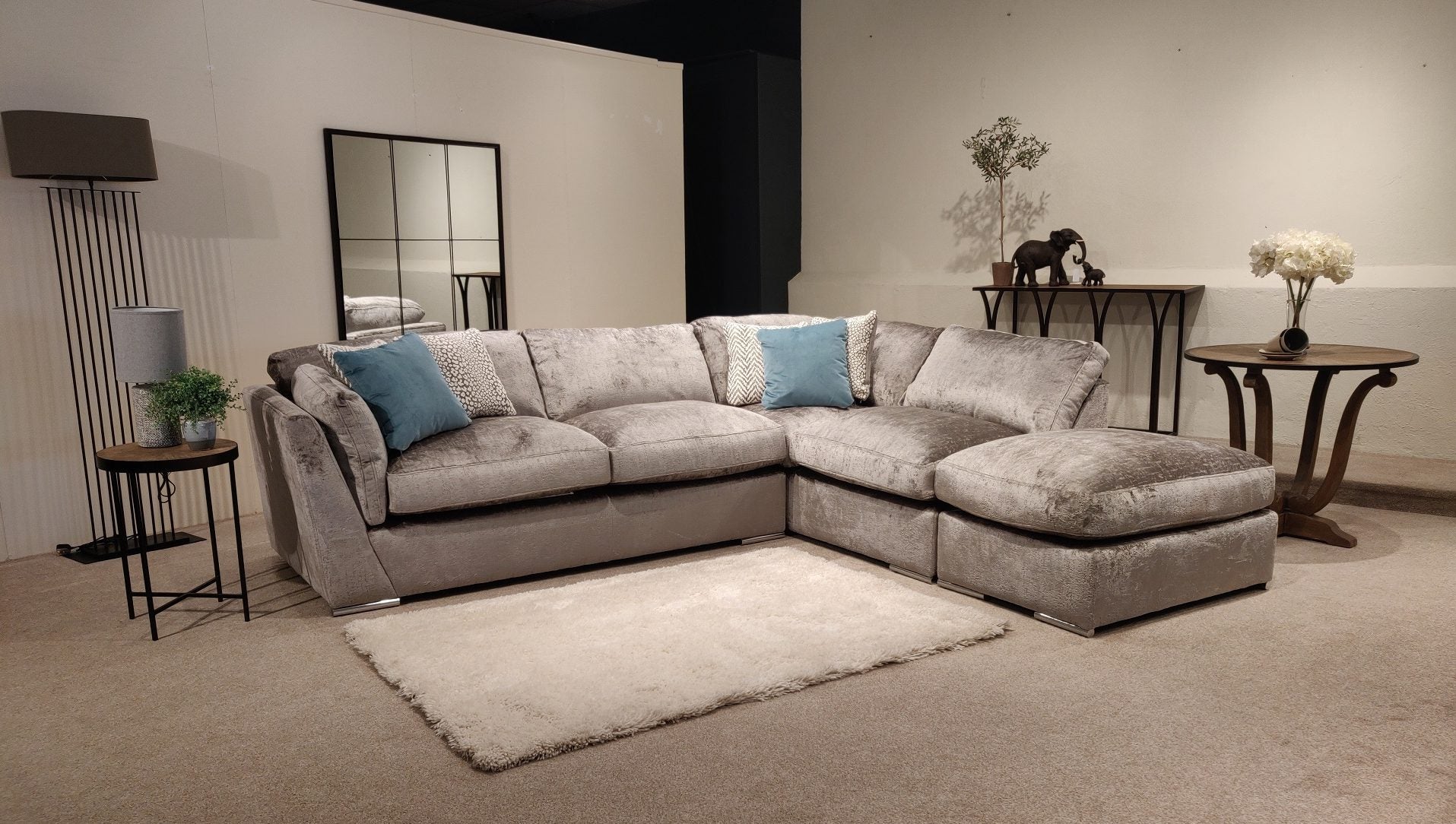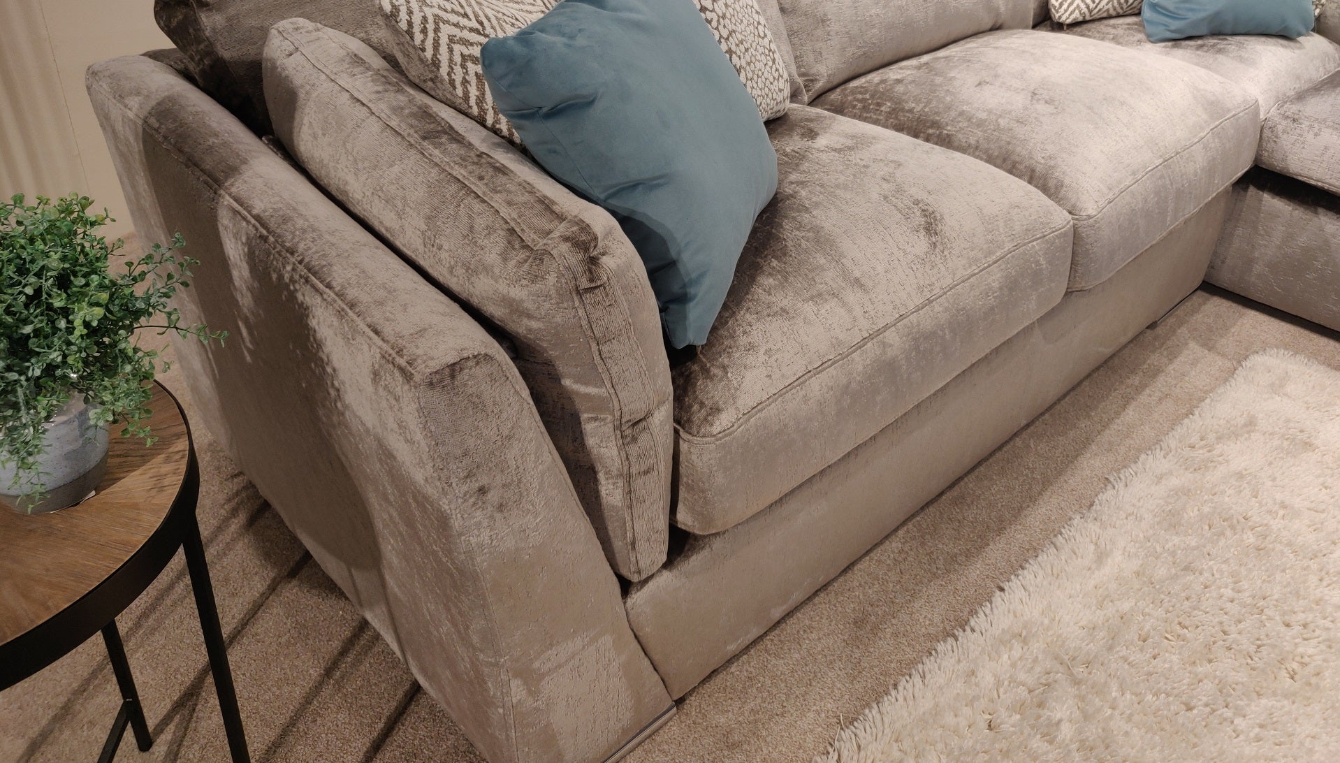 Beautifully proportioned corner sofa with plush cushions in a velvety crushed chenille fabric. Made with 'Extra Flex' a high density foam seat interior.
